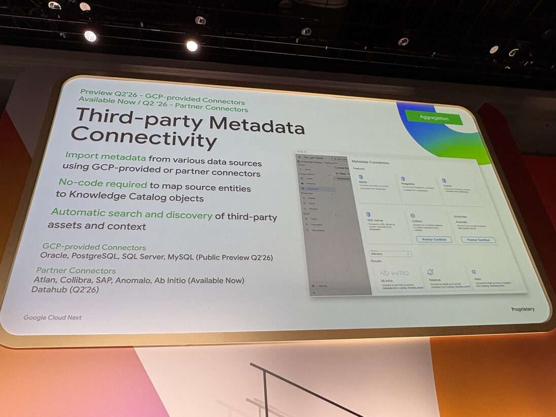 ADK ユーザー向けには Knowledge Catalog for Google Cloud Data Agent Kit も発表されて、一次サポートが用意されます。