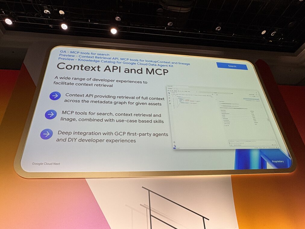 - Context Retrieval API と MCP tools の整備で、自作エージェントからも Google 純正エージェントと同じコンテキスト基盤を参照できるようになりました。