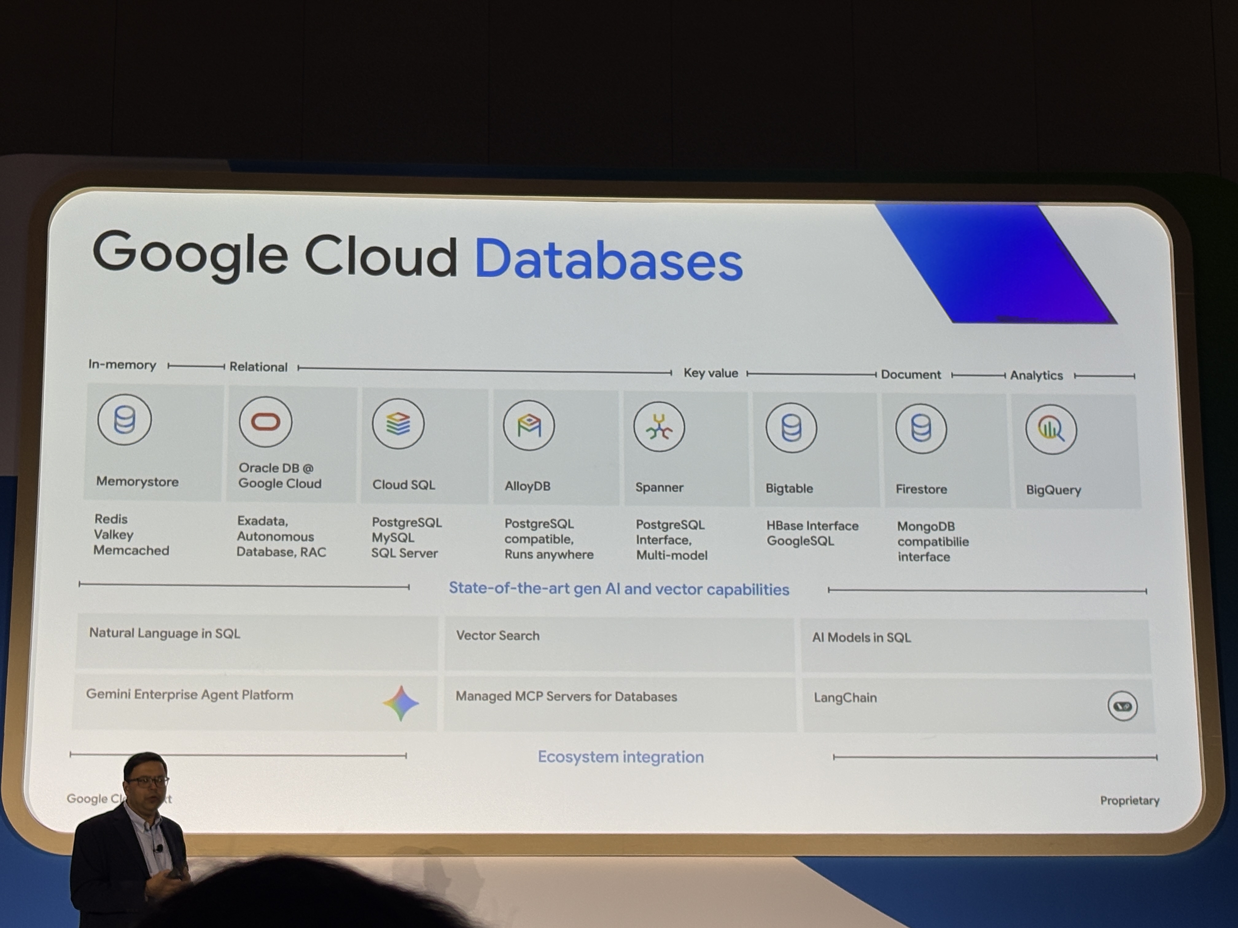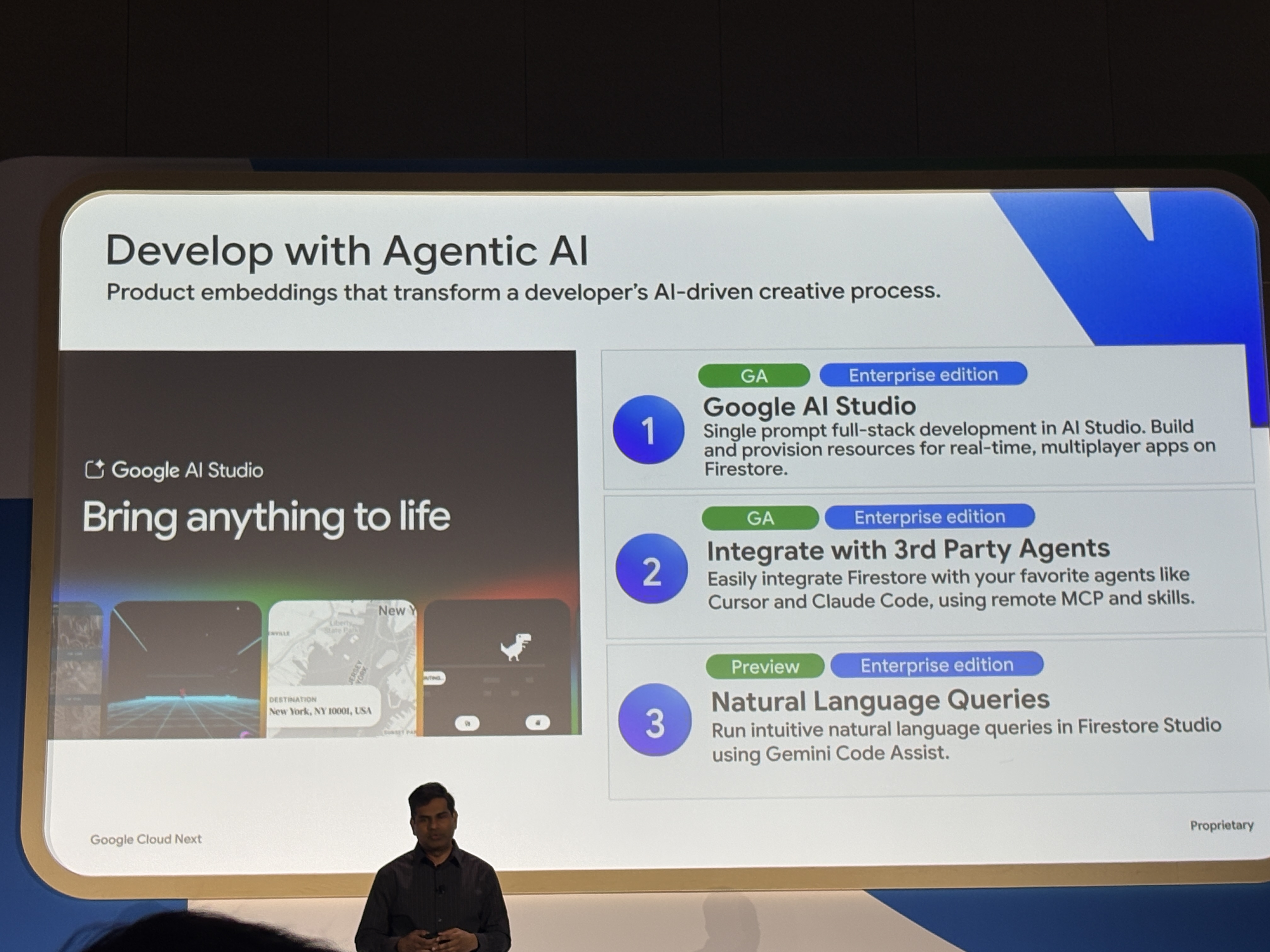 Memorystoreはキャッシュをベクトル検索エンジンとしても使えるようになりましたし、BigtableはIn-memory Tierでホットスポット問題を解決しました。また特にFirestoreはGoogle AI StudioやClaude Codeとの連携を発表していましたね。