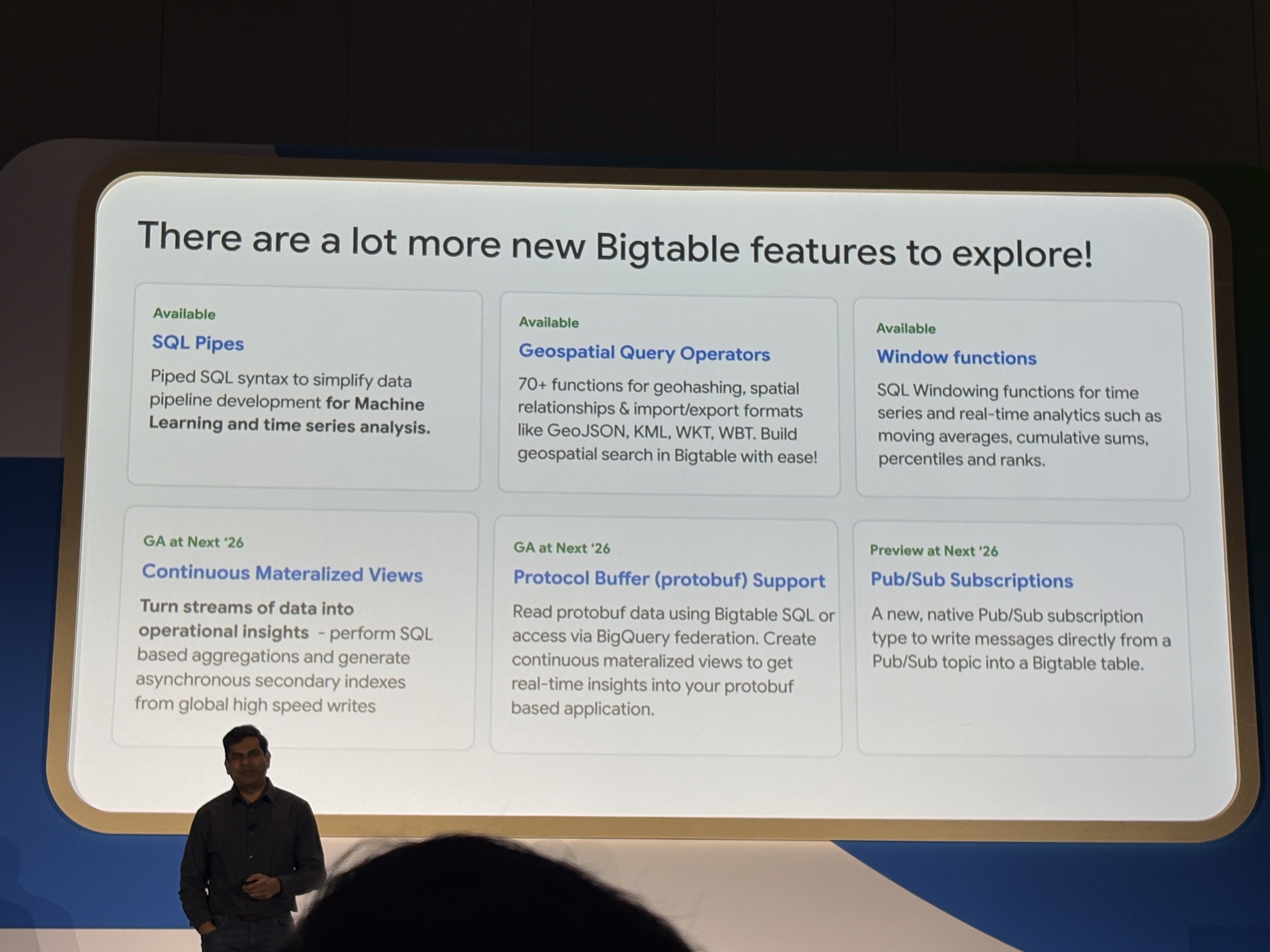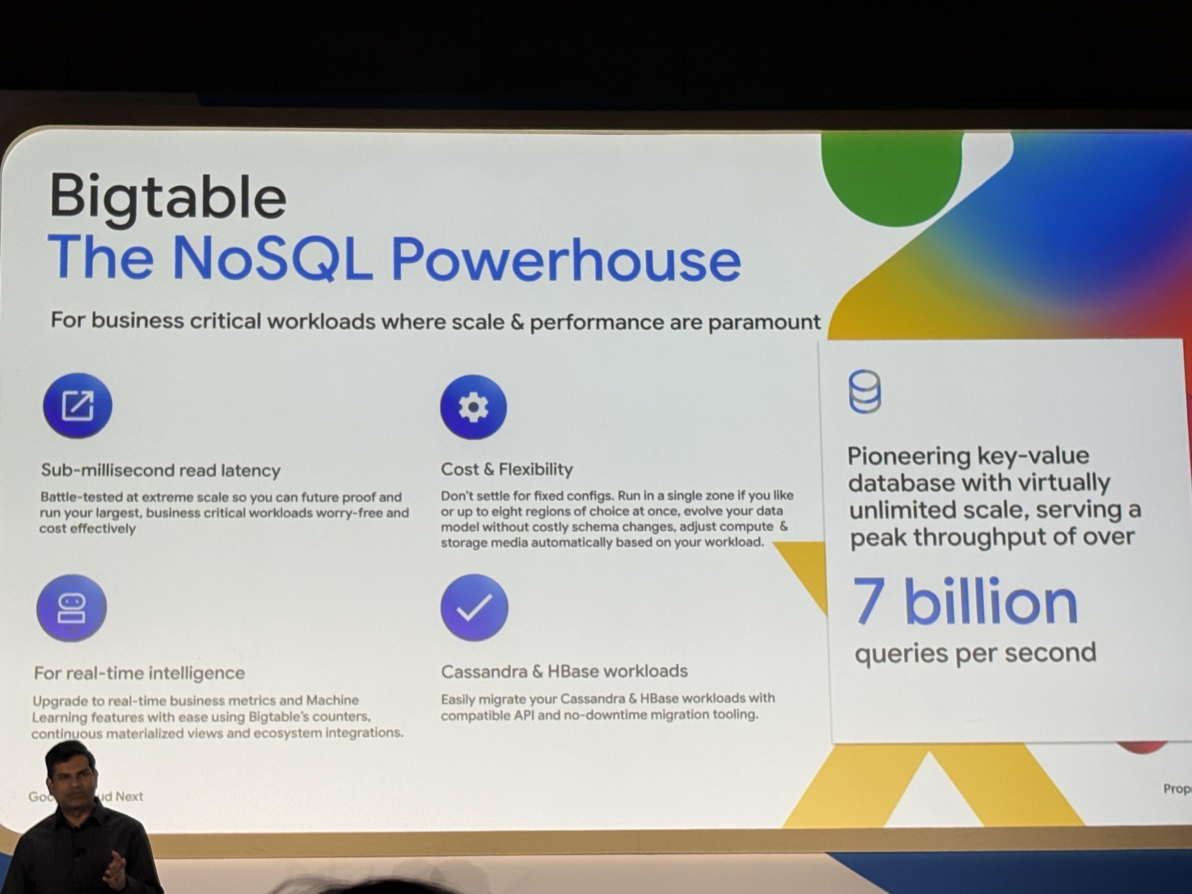 今回は「NoSQL for modern apps and AI: The future of Memorystore, Firestore, and Bigtable」セッションを聴いてきました。