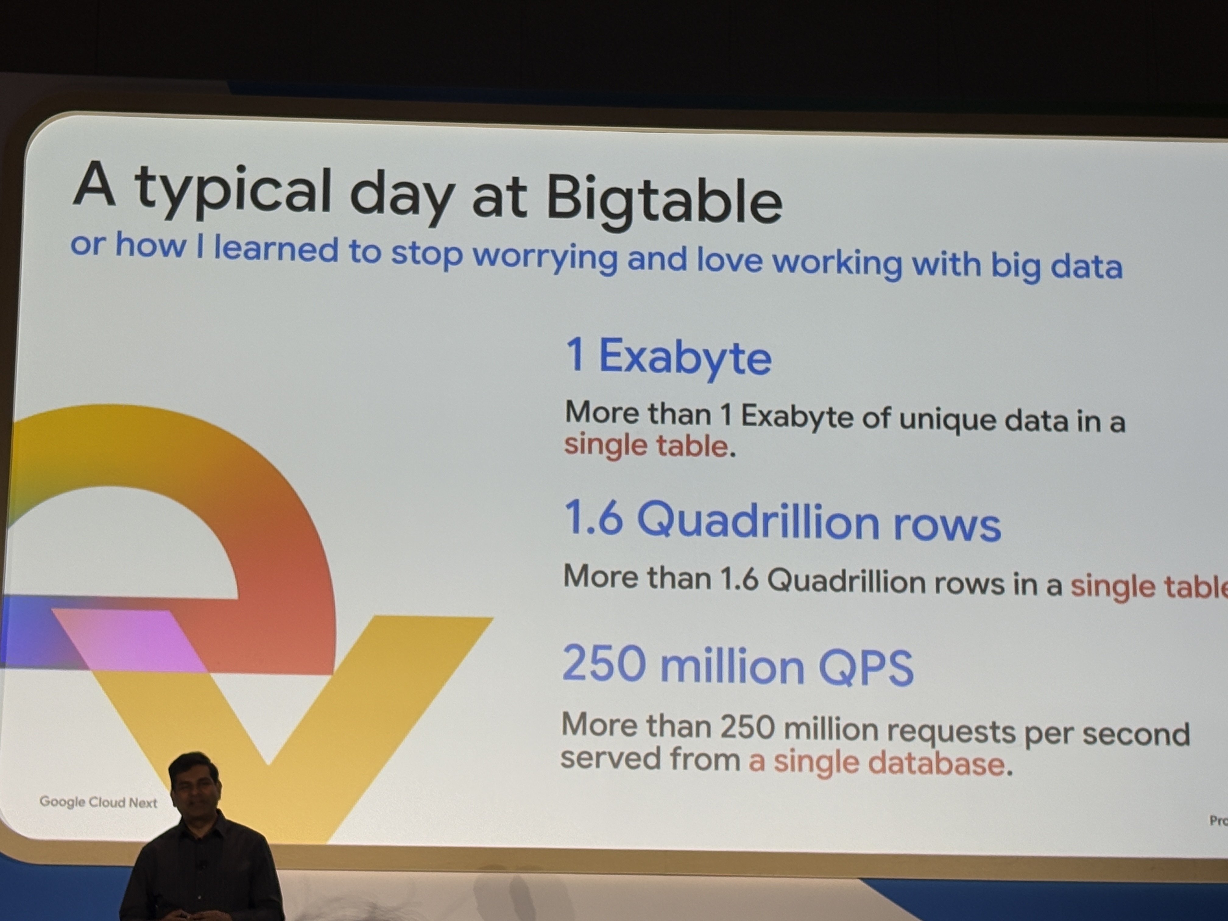 ピーク時で70億QPSという数字を説明されました。通常のシステムではなかなかみない数字ではありますが、Gmail・Google Maps・YouTubeがBigtableで動いていると考えると少し想像はできるかなと思います。