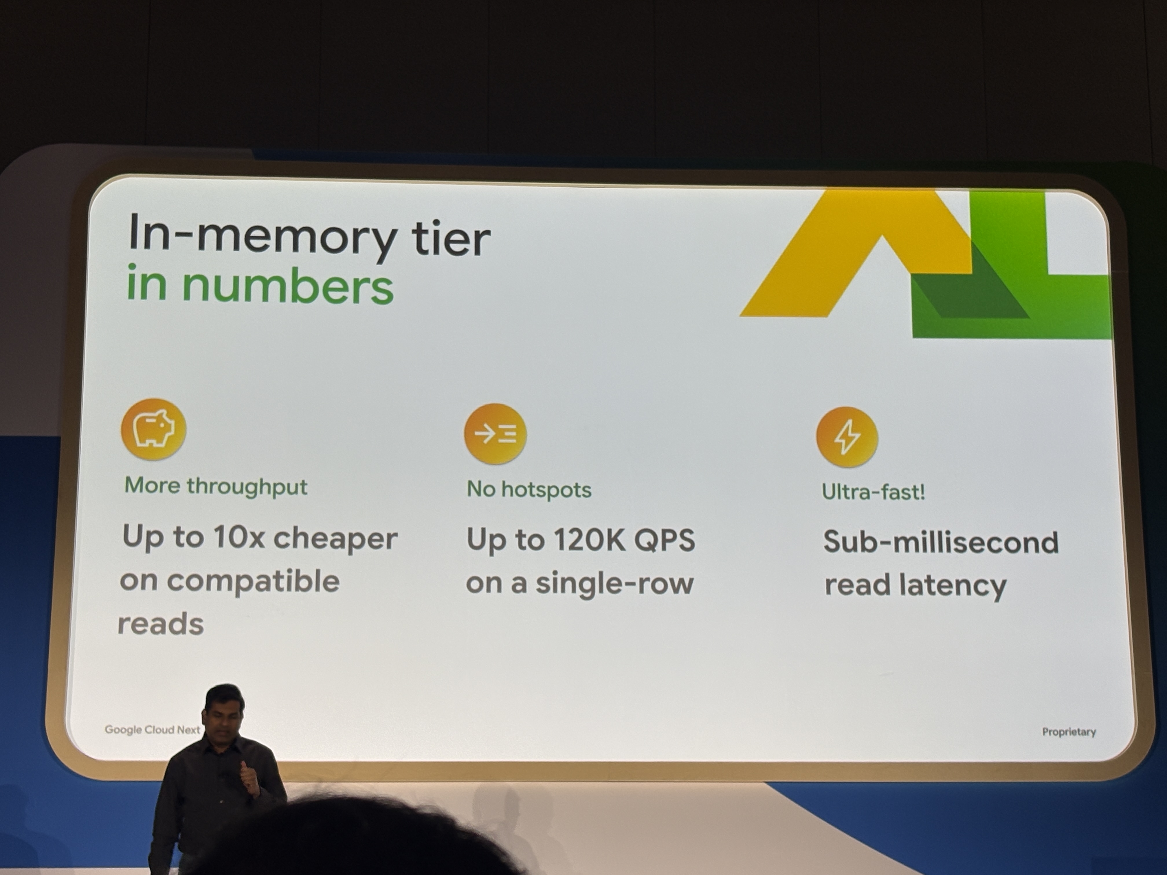 対象行の読み取りで10倍安価で、単一行で12万QPS、レイテンシはサブミリ秒となっているため、ホットスポットになりやすい行へのアクセスが集中したとしても、In-memory Tierが吸収してくれます。
