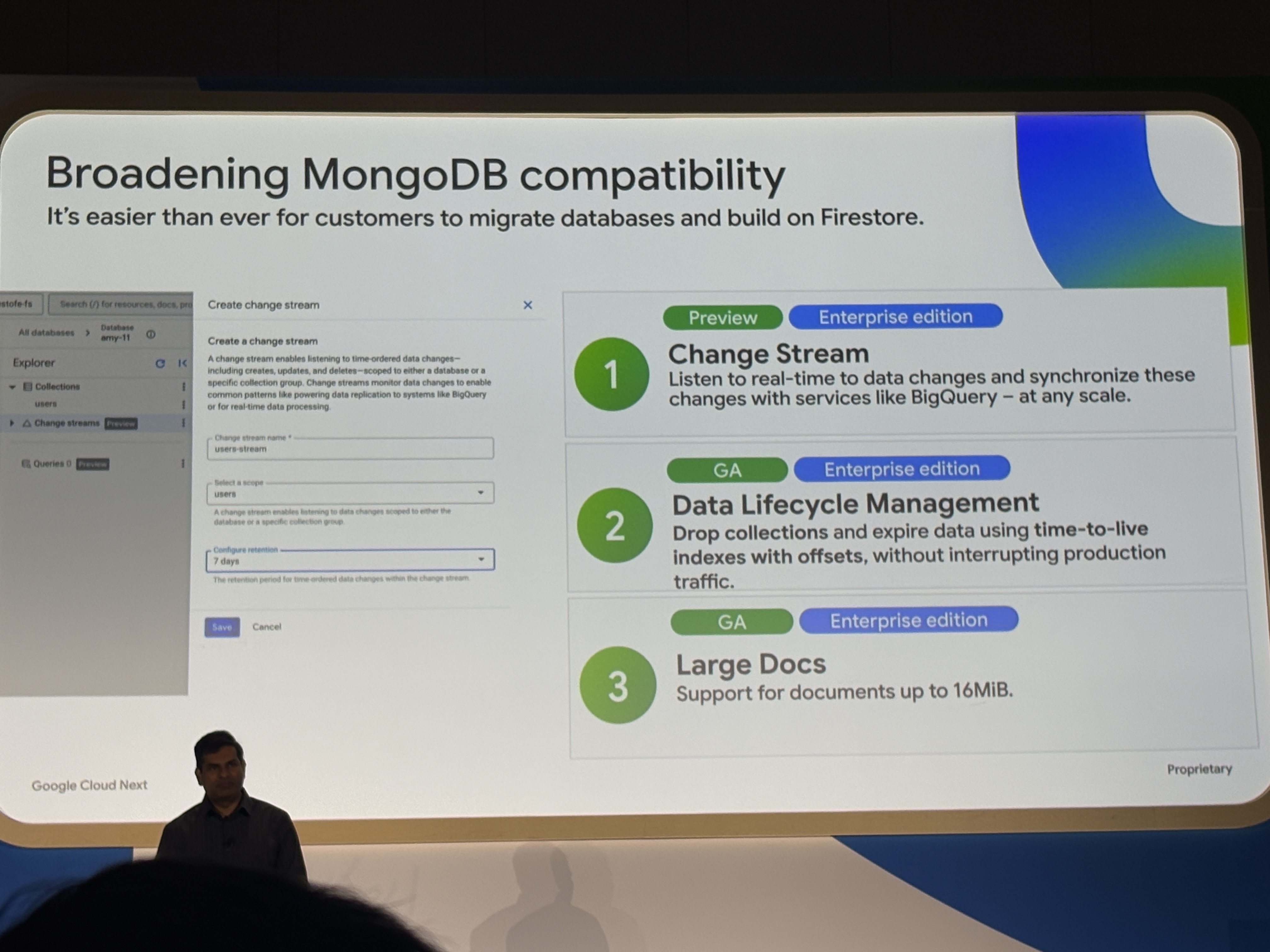 3rdパーティエージェントとの連携もGAされ、CursorやClaude CodeからRemote MCPでFirestoreを操作できます。またFirestore StudioでGemini Code Assistを使った自然言語クエリはPreviewで発表されました。