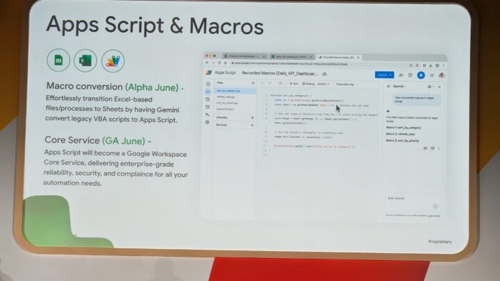 - Geminiを活用し、ExcelのVBAスクリプトをGoogle Apps Scriptに自動変換する機能であり、2026年6月にアルファ版が提供予定とのこと。