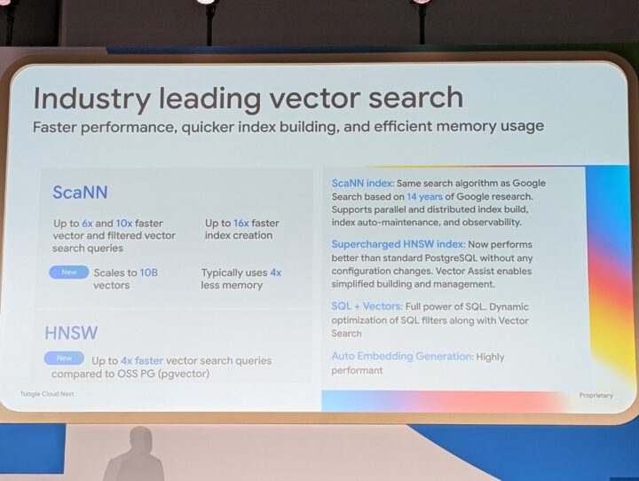 まず、AI(生成AI)との親和性を高めるためのベクトル検索機能の大幅な強化が発表されました。