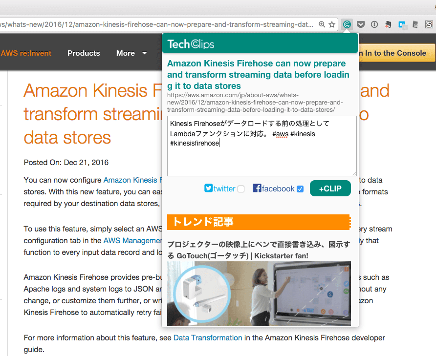 普段はChromeのエクステンションを使ってパパッと、ちょっと調べて、それでも数分くらいで完結にメモしていきます。特にAWSの新サービス・新発表などは英語で、かつ情報が少ないので周辺情報などを調べてから書いてます。