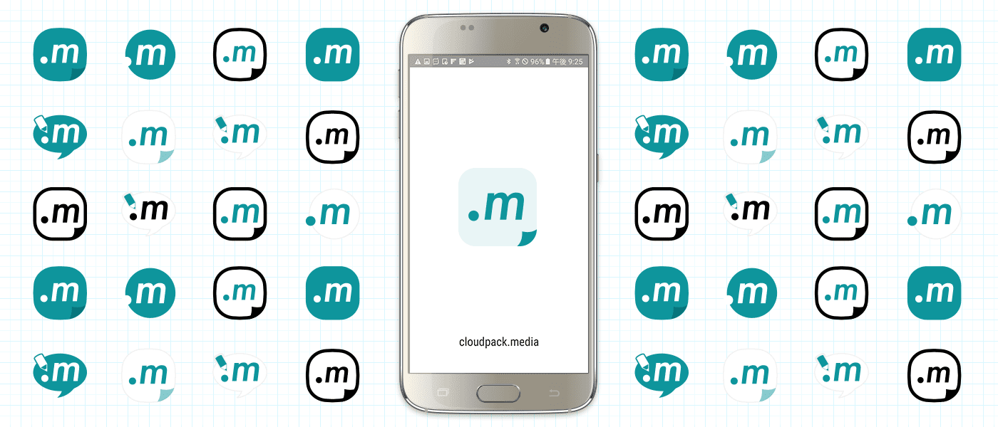 当初、アイコンにはサイトデザイン時に用意していたFaviconをベースに『.m』マークの下に『cloudpack.media』というタイトルを付けたアイコンを用意していました。アイコン内の文字の視認性、ホーム画面に並んだ際の存在感などを考慮してデザインをアレンジする中で、『.m』というマークを活かし、最終的には読み物コンテンツである事を感じさせる佇まいに着地させました。