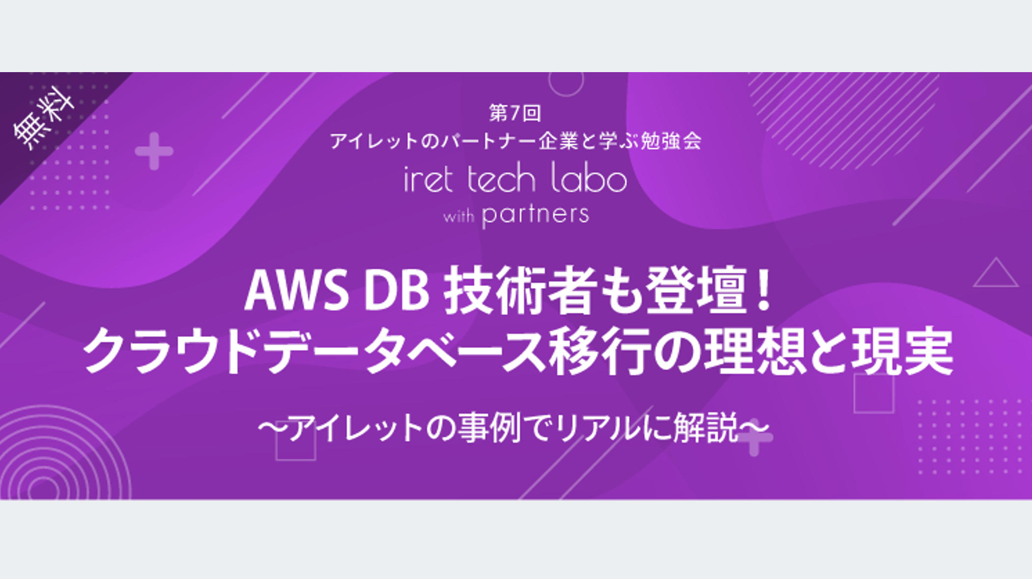 2024年2月29日にウェビナー「iret tech labo with partners #7『AWS DB 技術者も登壇!クラウドデータベース移行の理想と現実~アイレットの事例でリアルに解説~』」を開催しました。